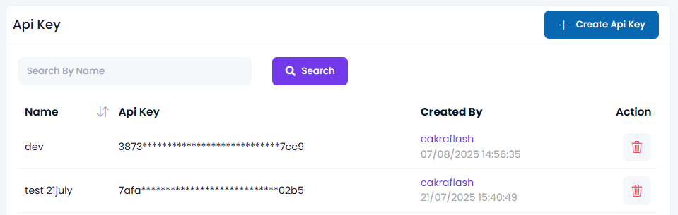 Perlu diingat bahwa API Key hanya dapat dilihat saat dibuat pertama kali. Anda hanya dapat membuat ulang API Key jika Anda lupa atau tidak menyimpannya.
